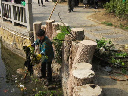 為美化城市,改善市民生活環(huán)境,提升城市的品位,增添城市的靈氣,近年來,淮南市在市區(qū)一些主干道邊、小游園內(nèi)、辦公樓前和一些居民區(qū)興建了一個(gè)個(gè)造型別致的景觀池塘,這些小池塘與綠化帶、景觀燈、漂亮的樓閣、水亭相映,繪制出令人沁心的優(yōu)美環(huán)境,成為市民休閑娛樂的場所。然而,記者走訪發(fā)現(xiàn),由于人為破壞,加上清理不及時(shí),管理不到位等,一些景觀池塘不斷遭到垃圾的困擾,一些小游園廣場旁景觀池塘的水面上常常漂浮著各種垃圾;有些小池塘的水質(zhì)在受到人為污染,經(jīng)相關(guān)部門處理后,過不了多長時(shí)間,水面上又會浮起形形色色的生活垃圾;更有甚者,近日記者在一些地段采訪時(shí),目睹了一些景觀池塘內(nèi)的水質(zhì)已變成一池臭水;還有一些景觀小池塘被市民開墾成菜園……