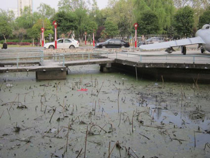 除了市區(qū)一些公共游園的景觀池塘遭受垃圾污染外,一些小區(qū)新建的游園景觀池也漸漸變成臭水池,一些新小區(qū)建設(shè)的景觀池塘也沒有幸免。