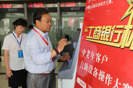 對于一些中老年朋友來說,寧愿手拿銀行卡在柜臺前排隊等候半個小時也不愿去銀行自助取款機取錢;寧愿相信用慣了一輩子的存折也不愿相信一張小小的銀行卡片……但有些中老年人卻可以輕松地對銀行自助設(shè)備說“easy”。5月28日上午,來自淮南市各區(qū)的32位中老年朋友聚集在中國工商銀行淮南分行,看誰能夠在最短的時間內(nèi)使用一臺存取款一體機完成取款、存款、轉(zhuǎn)賬、查詢4項交易業(yè)務(wù),現(xiàn)年64歲的高老先生2分14秒完成所有操作,贏得了老年組的第一名;中年組參賽選手張女士比高老先生更快,2分04秒就完成了所有操作,贏得了中年組的第一名。而同樣是這4項操作,一般的年輕人完成它也需要3分鐘左右。