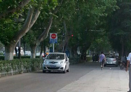 同樣的情景也發(fā)生在龍湖路的非機動車道上。由于龍湖路位于市區(qū)較為繁華的商業(yè)街區(qū),車流量人流量都很大。不少機動車輛就“借道”擠占非機動車道,在非機動車道上行駛。