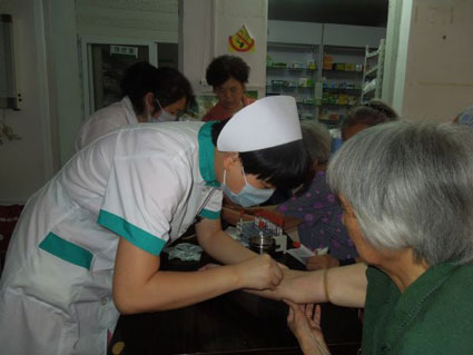在基地社區(qū)衛(wèi)生服務(wù)站,醫(yī)務(wù)人員為老人測量血壓,檢查肝腎功能、血糖、血脂、血常規(guī)等進(jìn)行多項(xiàng)檢查。龍泉街道華健醫(yī)院社區(qū)衛(wèi)生服務(wù)中心副主任沈群介紹,醫(yī)務(wù)人員不僅現(xiàn)場為老人做免費(fèi)健康體檢,還為老人建立健康檔案,對慢性病患者進(jìn)行3個(gè)月隨訪一次,對行動不便的老人將上門免費(fèi)體檢。據(jù)了解,8月29日早上,在基地社區(qū)衛(wèi)生服務(wù)站還將舉行一次免費(fèi)健康體檢,沒有來得及體檢的老年人可前往。