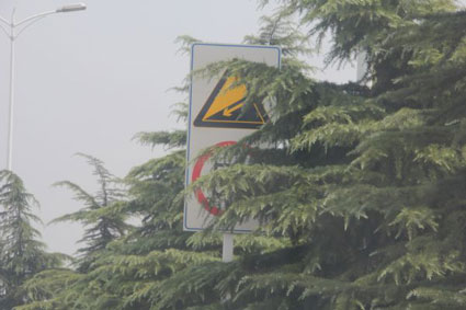 近日,早報(bào)熱線接到市民徐先生打來電話反映:“前不久我發(fā)現(xiàn)我的車輛有兩條在洞山西路超速百分之十的違章信息,我感到十分納悶。因?yàn)槲矣∠笾忻看谓?jīng)過洞山西路的時(shí)候,都是按照路邊的限速標(biāo)志最高也就是每小時(shí)60公里的速度行駛,為何會(huì)有超速的違章?為了弄清楚我再經(jīng)過洞山西路的時(shí)候就特意觀察路邊豎立的交通指示標(biāo)志,最后我發(fā)現(xiàn)了問題所在,原來在洞山西路羅山油庫東面的路段,由西向東方向的限速50公里的路牌和我們躲起了貓貓,藏身在綠化帶內(nèi)的綠化樹后面,讓司機(jī)很難發(fā)現(xiàn)。對(duì)于這種由于限速標(biāo)志不明顯而造成的違章,我感覺十分無奈。希望早報(bào)熱線能夠給予關(guān)注,引起交通、園林等部門的重視,別讓交通標(biāo)志‘躲貓貓!