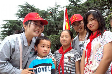 圖一:志愿者帶領(lǐng)農(nóng)民工子女感受城市