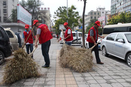 圖三:志愿者走上街頭打掃衛(wèi)生(圖片由團(tuán)市委供)