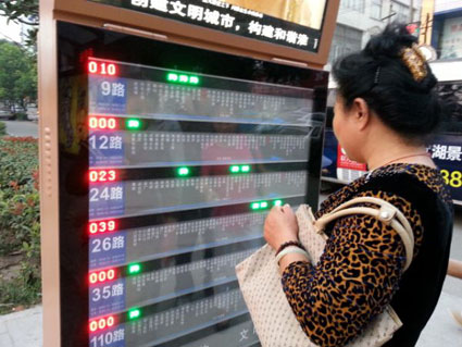 記者在龍湖路東側(cè)的舜耕站看到,站牌上已經(jīng)顯示出9路、24路、26路三條線路的公交車輛的位置和距離,不時(shí)吸引市民駐足圍觀,并拿出手中手機(jī)紛紛拍照。“這樣的公交站牌真不錯(cuò)”、“非常好,希望全部都能早點(diǎn)投入使用”……市民觀看時(shí)不停地交口稱贊。市民們表示,以前等公交車,不知道車的位置,等的時(shí)候很容易讓人著急,而新的電子公交站牌投入使用后,不僅背面設(shè)有淮南市交通地圖,而且正面還顯示出公交車的位置和距離,讓市民等車心里有數(shù),確實(shí)很方便,彰顯人性化。