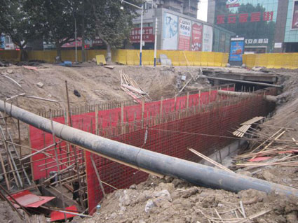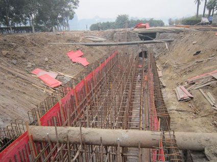 圖一二為人民北路箱涵擴(kuò)建工程施工現(xiàn)場。