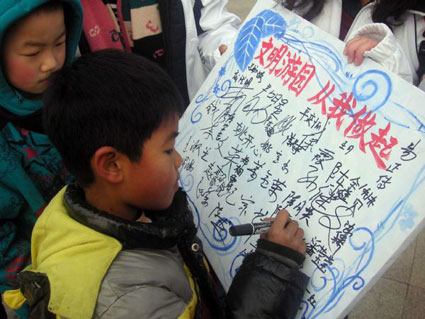 80名大學(xué)生自發(fā)做環(huán)境公益宣傳活動(dòng)