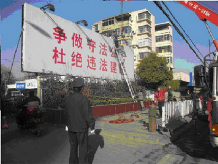 為進一步改善城市面貌,田區(qū)城管對田區(qū)大型戶外廣告進行查處拆除,尤其針對泉山南路淮化生活區(qū)兩處“高炮”廣告,他們積極與淮化集團進行交涉、溝通,充分傳達、解釋了市區(qū)兩級的工作要求和精神,同時,著力完善廣告拆除相關(guān)法律手續(xù),最終,淮化集團決定自行拆除戶外廣告。