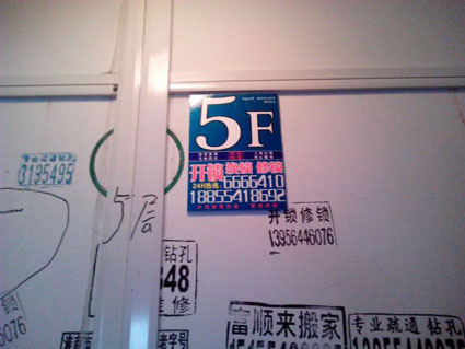 記者了解到,除了南苑小區(qū),龍泉東淮等多個小區(qū)也都出現了這種樓層號牌,這種號牌是由開鎖公司與化三建生活部聯合制作的!吧厦孢有物業(yè)公司的名字,可信度也高出了很多,”居民們稱,倘若家里確實需要換鎖或是疏通管道等服務,肯定會撥打樓層號牌上的電話而 不會從墻上的小廣告中挑選號碼。