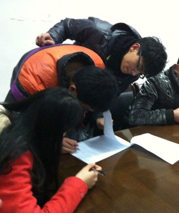圖三為大學生們正在踴躍填寫志愿者報名表。