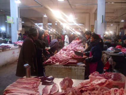 據(jù)了解,2013年春節(jié)前,五花肉的價(jià)格為12.5元/斤,春節(jié)之后則漲了0.5元/斤。今年五花肉的價(jià)格比去年同期便宜了一點(diǎn),市民黃薇說:“每頓飯都要燒個(gè)葷菜,到菜市場(chǎng)買菜,豬肉是必買的,我感覺今年的肉價(jià)一直都比較正常,沒有什么大的波動(dòng)!