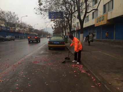 春節(jié)期間,路面難見(jiàn)鞭炮紙屑