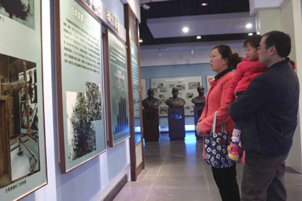 圖一:市民在新四軍紀(jì)念林陳列館內(nèi)參觀了解中國(guó)共產(chǎn)黨與人民群眾建立的魚水深情。