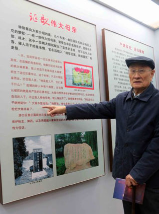 圖二:淮南市新四軍歷史研究會(huì)顧問(wèn)宋長(zhǎng)漢向記者介紹姚陳氏的事跡。