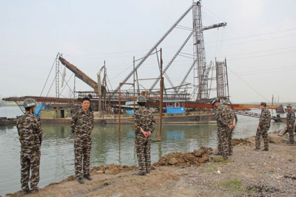 圖為整治非法采砂的現(xiàn)場(chǎng)。