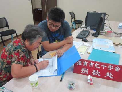 圖:王宗榮老奶奶在市紅十字會登記捐款