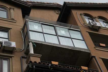 圖一:80號樓604室住戶在樓房外側(cè)加蓋“空中樓閣”
