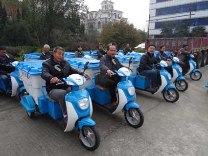 圖:26輛電動(dòng)保潔車(chē)分發(fā)到各個(gè)鄉(xiāng)村(社區(qū))