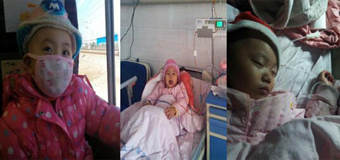 病中的小夢(mèng)佳(圖片來自張士偉QQ空間)