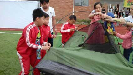自己搭帳篷、開(kāi)篝火晚會(huì)、在操場(chǎng)集體宿營(yíng)……22日晚上,一場(chǎng)別開(kāi)生面的學(xué)生素質(zhì)拓展訓(xùn)練營(yíng)活動(dòng)讓往日寂靜的校園異常熱鬧。當(dāng)晚,淮師附小山南校區(qū)的操場(chǎng)上,一頂頂五顏六色的帳篷成為62名參與活動(dòng)的小朋友臨時(shí)的“家”,離開(kāi)了爸爸媽媽的他們將在這個(gè)有趣的“家”里獨(dú)自體驗(yàn)戶外生活經(jīng)歷,分享團(tuán)隊(duì)協(xié)作快樂(lè)。