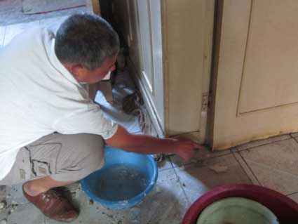 圖一:趙先生看著家中漏水嚴(yán)重顯得很無(wú)奈