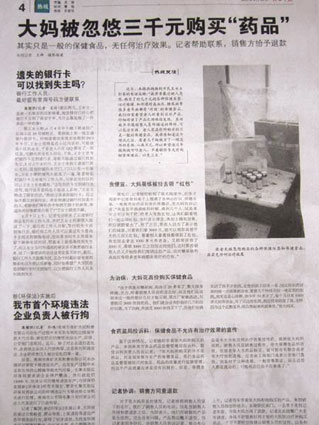 買藥碰上大忽悠。騙子花樣百出,一不留神就可能上當(dāng)受騙。為此,早報(bào)熱線也多次對(duì)一些騙術(shù)進(jìn)行了揭露,不過還是有一些人被騙。今年6月份,就有一位市民反映,“我母親最近被人忽悠,購(gòu)買了好幾千元的各種保健床墊,和所謂對(duì)高血壓、糖尿病等很多老年病都有‘療效’的保健食品!睋(jù)了解,一些不良商家,為了推銷保健產(chǎn)品,夸大保健產(chǎn)品功效,忽悠老人購(gòu)買。經(jīng)過記者幫助聯(lián)系,銷售方給予退款。早報(bào)熱線以《大媽被忽悠三千元購(gòu)買“藥品”》為題進(jìn)行了報(bào)道,以此提醒市民,特別是老年人時(shí)刻警惕,以免上當(dāng)受騙。