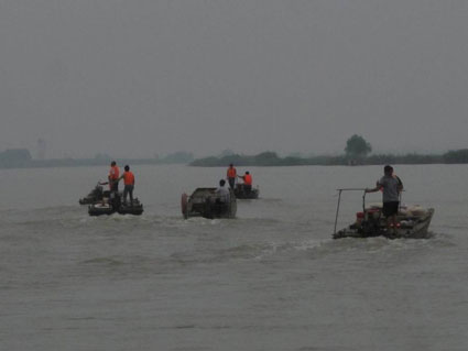 淮南市漁政處接到險(xiǎn)情報(bào)告后,告知漁船先進(jìn)行自救,立即報(bào)告淮南市農(nóng)委,并向淮南市地方海事局田家庵海事處通報(bào)險(xiǎn)情,啟動(dòng)《淮南市漁政漁港監(jiān)督管理處漁業(yè)船舶水上安全突發(fā)事件應(yīng)急預(yù)案》,指揮中國(guó)漁政34612號(hào)先行救助。中國(guó)漁政34612號(hào)快速駛往事發(fā)水域,漁政船通過(guò)高頻電話發(fā)布信息,要求在附近作業(yè)的漁船前往事發(fā)水域開展?fàn)I救。
