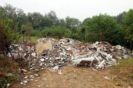現(xiàn)場(chǎng):濕地公園內(nèi)建筑垃圾成堆
