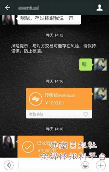 9月25日下午,淮河早報、淮南報業(yè)新聞網(wǎng)記者聯(lián)系到了這位發(fā)帖的網(wǎng)友方女士。方女士介紹,今年6月,她通過一家求職網(wǎng)站,看到了一個招聘手機(jī)電影代理的信息。在交了199元錢后,就加盟了,跟著學(xué)做了一段時間,感覺還不錯。9月22日,對方對方女士表示,有一種新的賺錢方式,想要加盟,需要交1000元押金。方女士沒有多想,就把押金轉(zhuǎn)過去了。然而,就在押金轉(zhuǎn)過去后,對方消失了,再也聯(lián)系不到了。