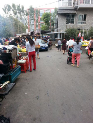 黎明村西側(cè)商販占道影響通行