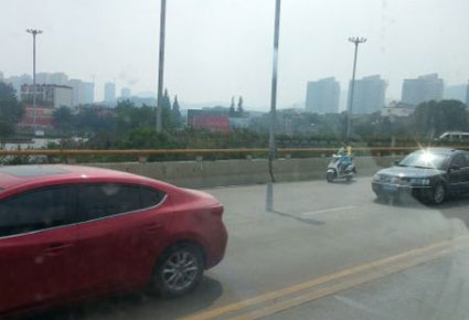 圖:騎電瓶車從淮河大道立交橋上駛過