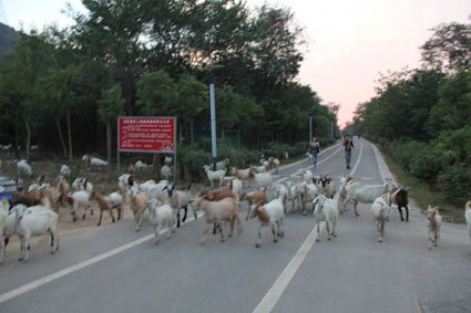 圖:傍晚舜耕山風(fēng)景區(qū)環(huán)山路上的羊群