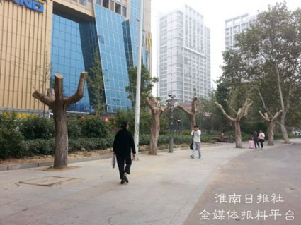 10月23日,有網(wǎng)友向淮南日?qǐng)?bào)社全媒體報(bào)料平臺(tái)反映,經(jīng)過(guò)淮南火車站北邊海沃世貿(mào)商城旁看到,有5棵粗大的法梧樹枝都被鋸掉,只剩下樹干,不知道是人為破壞,還是什么情況;春釉鐖(bào)、淮南報(bào)業(yè)新聞網(wǎng)記者聯(lián)系園林部門了解到,該5棵法梧系之前已經(jīng)被人為惡意破壞致死,近日?qǐng)@林部門安排人員將已死的樹截枝處理,近期將在原地再栽植新的法梧。