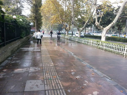 接到反映后,記者來到陳先生反映的地點(diǎn)。在洞山中路與廣場(chǎng)路交叉十字路口西南邊,交警崗?fù)の鬟叺娜诵械篮头菣C(jī)動(dòng)車道上,記者看到,有數(shù)米遠(yuǎn)的路面上都濕漉漉的,還不斷有水從旁邊的圍墻邊流出。陳先生介紹,他上班經(jīng)常經(jīng)過這條路,出現(xiàn)流水的情況大約有半個(gè)月時(shí)間了,不知道是什么原因!叭绻恢边@樣,時(shí)間長了,就可能長出苔蘚來,導(dǎo)致路面濕滑,可能致人滑倒!标愊壬硎,不斷有水流向路面上,不僅影響行人通行,還有損市容環(huán)境,希望相關(guān)部門能及時(shí)解決,方便行人通行。