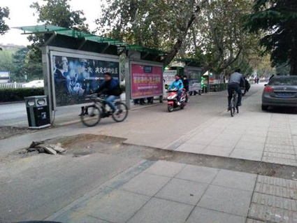 接到反映后,記者來到了洞山中路中國移動公交站牌后,看到非機動車道被施工單位破開了柏油路面,形成了一個淺坑,大理石的人行道也被破開了寬約50公分的長方形口子。雖然施工單位在施工后回填了泥土,可未完成的工程卻給行人和非機動車帶來了不便!斑@個大坑存在已有半個多月了,尤其是前幾天下了雨,大坑里積水很多,再加上來往車輛的碾壓,泥濘不堪,市民從此經(jīng)過非常危險!