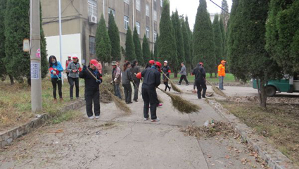 圖為:志愿者們正在對丁山小區(qū)的環(huán)境進(jìn)行集中清理。