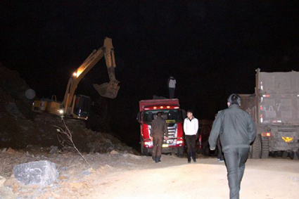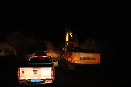 鑒于這種情況,執(zhí)法人員隨即上前叫停施工機械,為了防止偷采車輛和機械逃離,執(zhí)法人員把執(zhí)法車輛堵在石頭塘出口處。經(jīng)過執(zhí)法人員現(xiàn)場詢問車輛駕駛員和現(xiàn)場人員,在場人員都表示自己只是干活的,不是老板。執(zhí)法人員要求現(xiàn)場偷采人員與雇傭他們的老板聯(lián)系,讓其趕到現(xiàn)場接受處理。大約過了30分鐘,一輛沃爾沃越野車來到現(xiàn)場,車內(nèi)下來3名男子,到現(xiàn)場后態(tài)度十分蠻橫,不聽執(zhí)法人員勸阻,讓偷采人員駕駛車輛強行離開。由于石頭塘道路被執(zhí)法車堵住,偷采人員使用挖掘機對路邊坑洼進行鋪墊之后,強行離開了現(xiàn)場,而運輸山石的近10輛大型運輸車也都強行離開,由于夜晚山間十分黑暗,路況又十分崎嶇,再加上面對的都是大型施工機械,執(zhí)法人員根本無力阻攔。