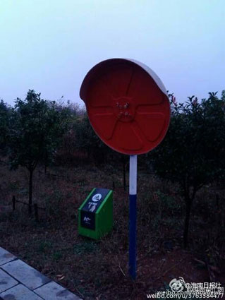 圖:網(wǎng)友反映的鏡面消失的凸面鏡,只剩下支架(圖片由網(wǎng)友提供)。