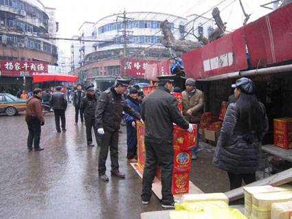 針對此,在前期充分宣傳動(dòng)員的基礎(chǔ)上,12月9日上午,田家庵區(qū)城管行政執(zhí)法局四中隊(duì)組織城管隊(duì)員、文明勸導(dǎo)員對道路東側(cè)占道經(jīng)營問題進(jìn)行規(guī)范整治。據(jù)介紹,該道路東側(cè)攤點(diǎn)以經(jīng)營餐點(diǎn)、煙花炮竹為主。從道路北端路口,城管隊(duì)員一家接著一家勸導(dǎo),要求能進(jìn)店的進(jìn)店經(jīng)營,條件不允許的要求靠路邊經(jīng)營。每到一處,城管隊(duì)員和文明勸導(dǎo)員都幫助攤主搬運(yùn)物品,取得攤主的理解和支持。