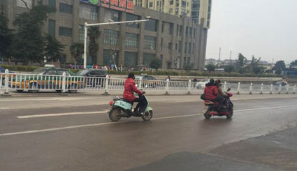 相對于“鐵包肉”的汽車,電動自行車被戲稱為“肉包鐵”。其安全系數(shù)較低,在機動車道騎行非常危險,若載人或超載物品,危險性就更大。12月8日下午4時許,記者在泉山十字路口看到,電動自行車違規(guī)帶人現(xiàn)象隨處可見。記者詢問其中一名車主知不知道電動自行車帶人是違規(guī)行為時,車主表示,“不太清楚。我用電動自行車帶朋友,圖的就是方便。再說車子就是這樣設(shè)計的2個座位,憑什么不讓帶人?”
