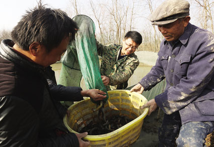 12月26日上午,鳳臺縣桂集鎮(zhèn)白塘村村民繆先生正在自家參股的合作社泥塘里收獲養(yǎng)殖的泥鰍。據(jù)了解,鳳臺水富里水產(chǎn)養(yǎng)殖專業(yè)合作社聯(lián)合周邊20多戶農(nóng)戶一起養(yǎng)殖泥鰍,鎮(zhèn)里數(shù)百人依靠泥鰍致富?娤壬嬖V記者,冬季是泥鰍市場的空白期,東亞市場上泥鰍供不應求,他們合作社每年冬季出口泥鰍近6萬斤,熱銷韓國、日本,填補市場空白,出口的泥鰍價格均高于本地市場價,高達18-20元每斤。