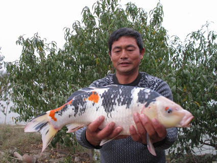 圖:楊同防手中展示的這條錦鯉據(jù)稱市場(chǎng)價(jià)賣4000多元