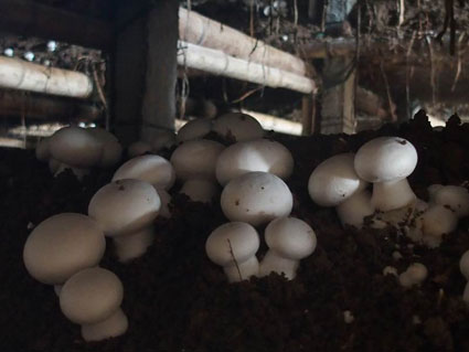 圖二:大棚中種植培養(yǎng)的雙孢菇。