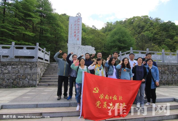 圖:淮河早報(bào)黨支部部分黨員志愿者在鷂落坪紅二十八軍軍政舊址紀(jì)念碑前重溫入黨誓詞