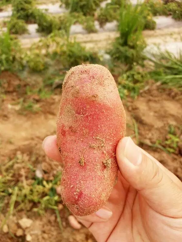 據(jù)種植戶介紹,它的來頭可不小,“母親”來自秘魯安第斯山脈的野生紅色馬鈴薯,“父親”則來自荷蘭的優(yōu)質(zhì)品種費烏瑞,由我國著名馬鈴薯專家尹作全教授通過12年傳統(tǒng)的有性雜交選育而成,此番也是首次登陸淮南試種,并獲得成功。