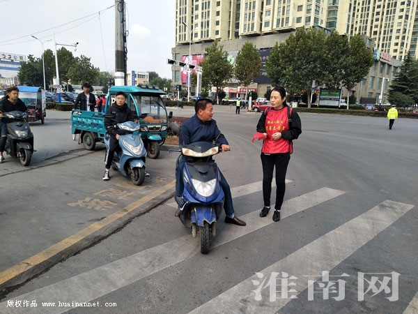 “現(xiàn)在是紅燈,請(qǐng)您稍等會(huì)兒,等綠燈亮了再通行。”10月16日上午,在泉山路十字路口,來自淮南日?qǐng)?bào)社的20余名黨員文明交通勸導(dǎo)志愿者,身穿紅坎肩、藍(lán)坎肩、手持小紅旗,在斑馬線前引導(dǎo)過往行人遵守交通秩序,勸導(dǎo)大家文明出行,為淮南創(chuàng)建文明城市增添了一抹動(dòng)人的色彩。