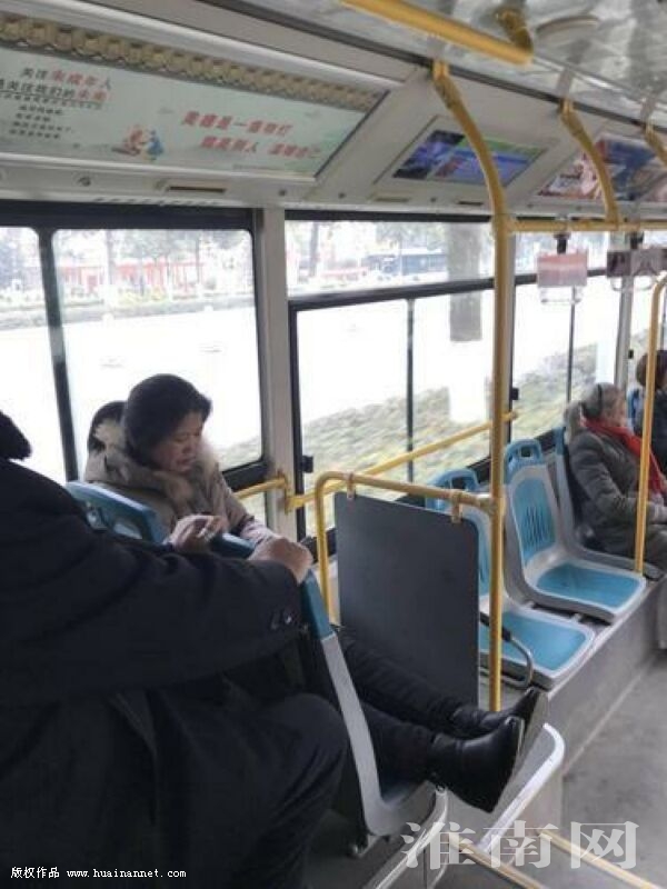 公交車上,一人一位是每個(gè)人遵循的基本原則,可有些人卻對(duì)此視若無睹。自己有了座位,還不能讓腿受罪,給雙腿也找個(gè)地方休息。1月25日上午,一輛9路車上,一市民占著兩個(gè)座位,在玩手機(jī)。(記者)