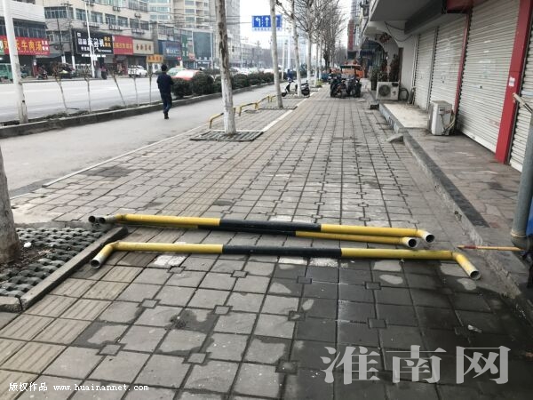 地樁、擋車柱拿放自如 人行道又成“停車場”