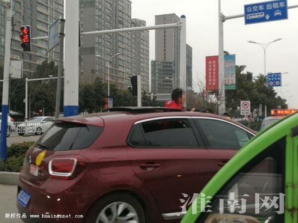 近日,淮河早報(bào)、淮南網(wǎng)記者在洞山東路路段看到,一輛紅色私家車在正常行駛過程中,車內(nèi)一名男孩將天窗打開,半個(gè)身子探出窗外。而此時(shí)馬路上來往車輛非常多,行駛中將身體探出天窗十分危險(xiǎn),不禁讓人為其捏了一把汗。 (記者)