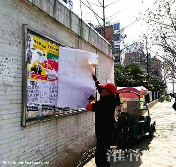 圖:文明勸導(dǎo)員正在清除“牛皮癬”(通訊員 許璨 記者 冉韜)